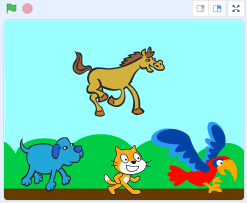 Now that we've added a backdrop, drag the cat down onto the ground.