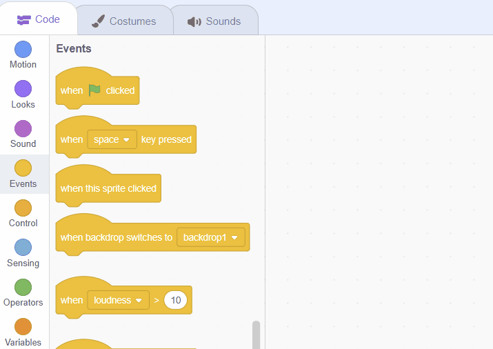 By default, each new project starts with the cat sprite already added. To delete the cat click on the x in the blue circle beside the cat in the sprite list.