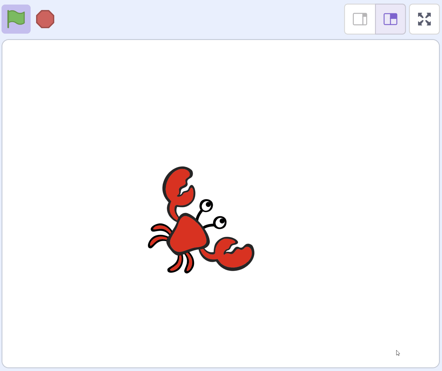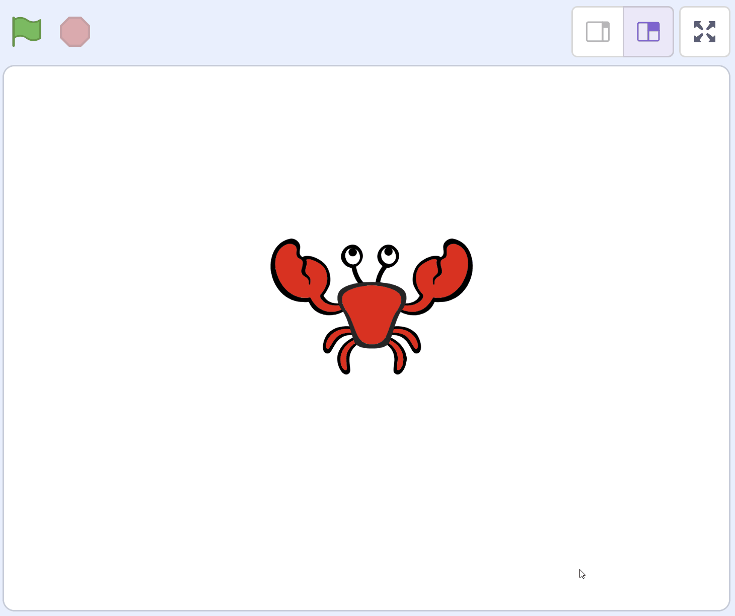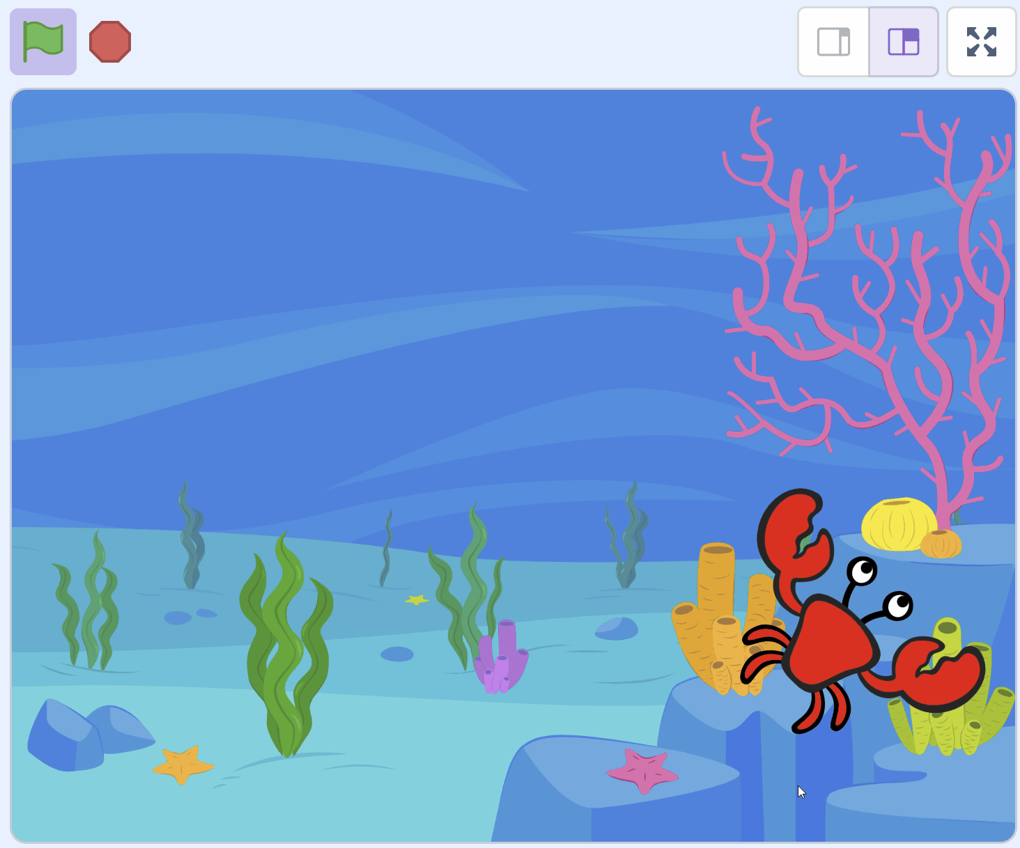 Add the following Scratch code to your crab sprite: when green flag clicked