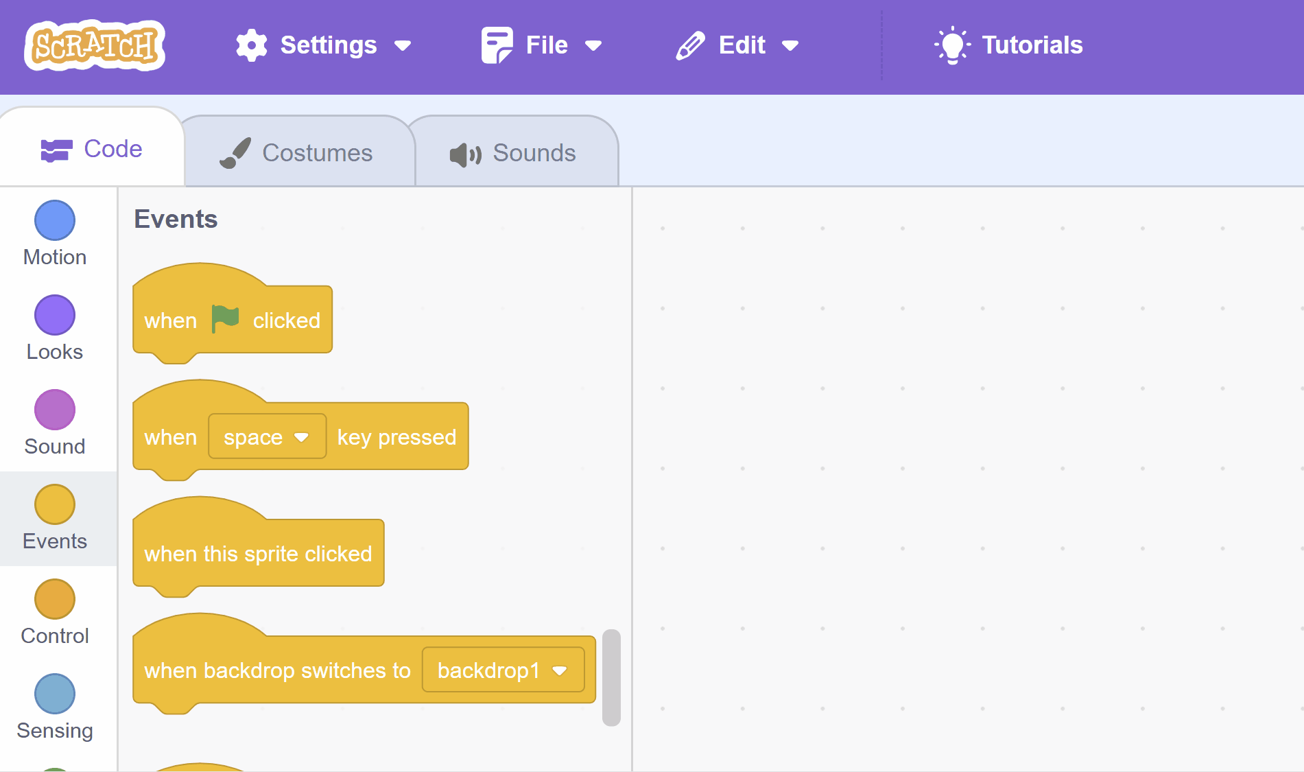 Open the Scratch website in a new tab and create a new project. Delete the cat sprite from the project.