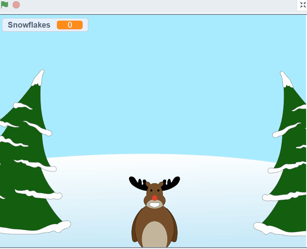 In the game we will move the Reindeer left and right at the bottom of the stage to try and catch falling Snowflakes.