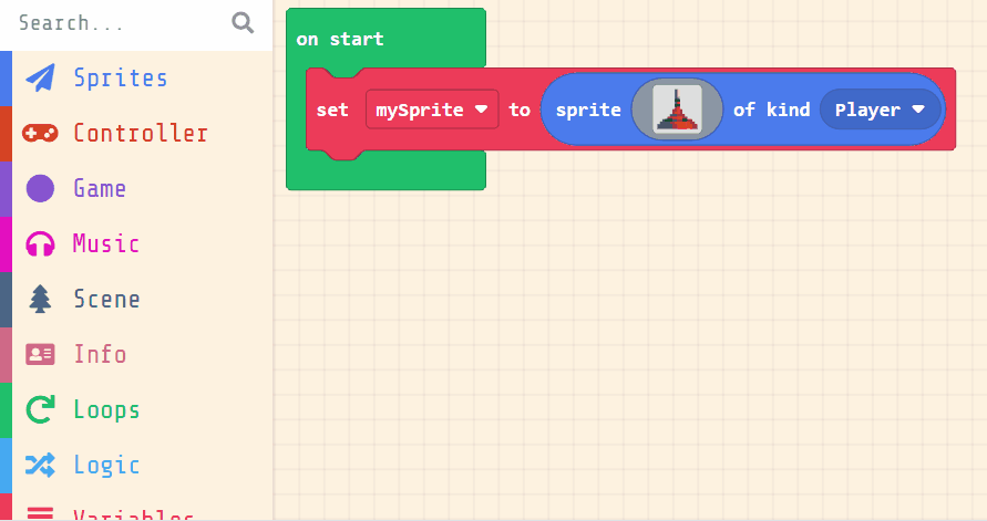 Add the following code and choose a sprite from the gallery. In this example we chose a monster: