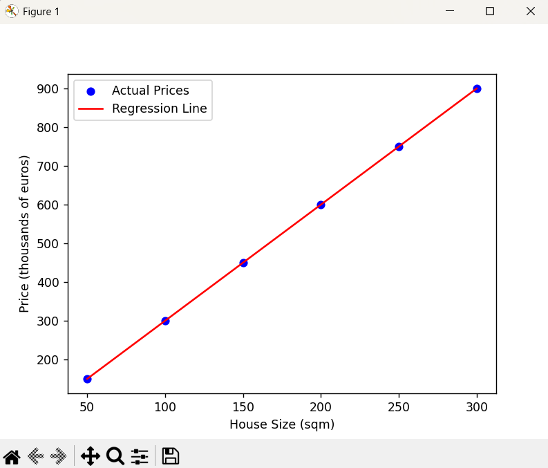 # Sample data: house sizes (in square meters) and prices (in thousands of euros)