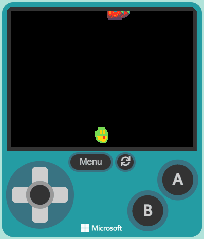 set position block.pick random block put in the values 0 to 160 for X. The screen is 160 in width so these values ensure that the fruit sprites can appear anywhere along the top of the screen.