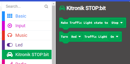 This will add the "Kitronik STOP:bit" category of code blocks to your toolbox.