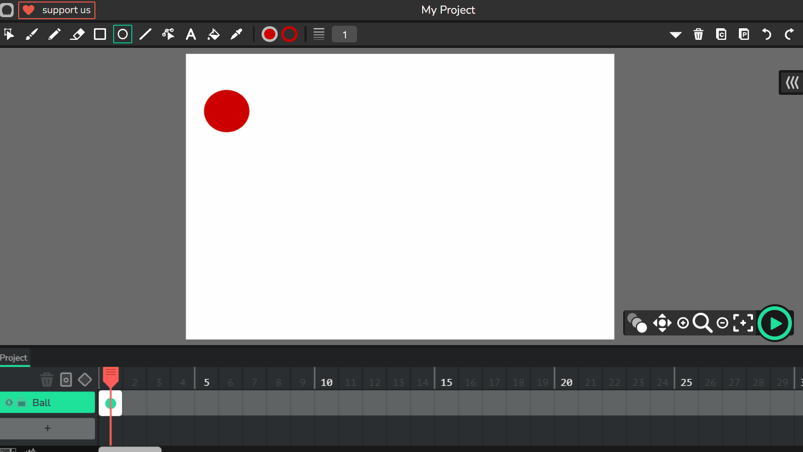 Let's start by drawing the ball for your animation. This will be the starting position where the ball is at the top left, ready to fall.