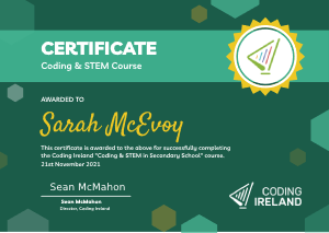 "Coding Ireland provided us with a comprehensive Coding, STEM and Robotics course that our students love and gives them a pathway to pursue the different areas in this vital field.